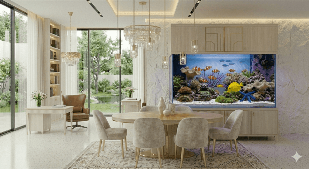 Ao final do dia, percebemos que o luxo mora na contemplação. Mais do que um projeto de design ou uma escolha técnica, esses aquários Marinhos são portais. Eles nos lembram que, o selvagem e o delicado podem coexistir em perfeita harmonia.